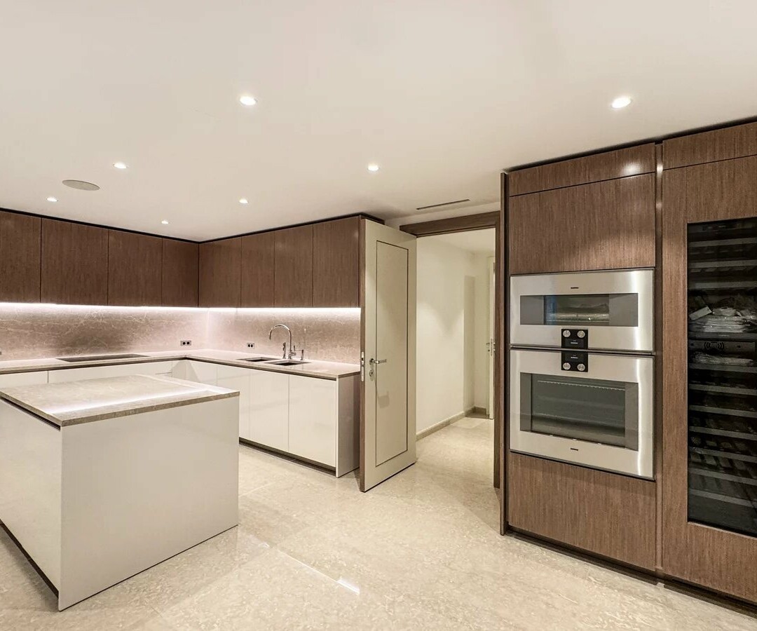 The interiors are defined by exceptional materials such as the finest marble, exclusive parquet flooring, and bespoke fittings throughout. The spacious designer kitchen meets the most demanding culinary expectations and integrates seamlessly into the refined living concept.