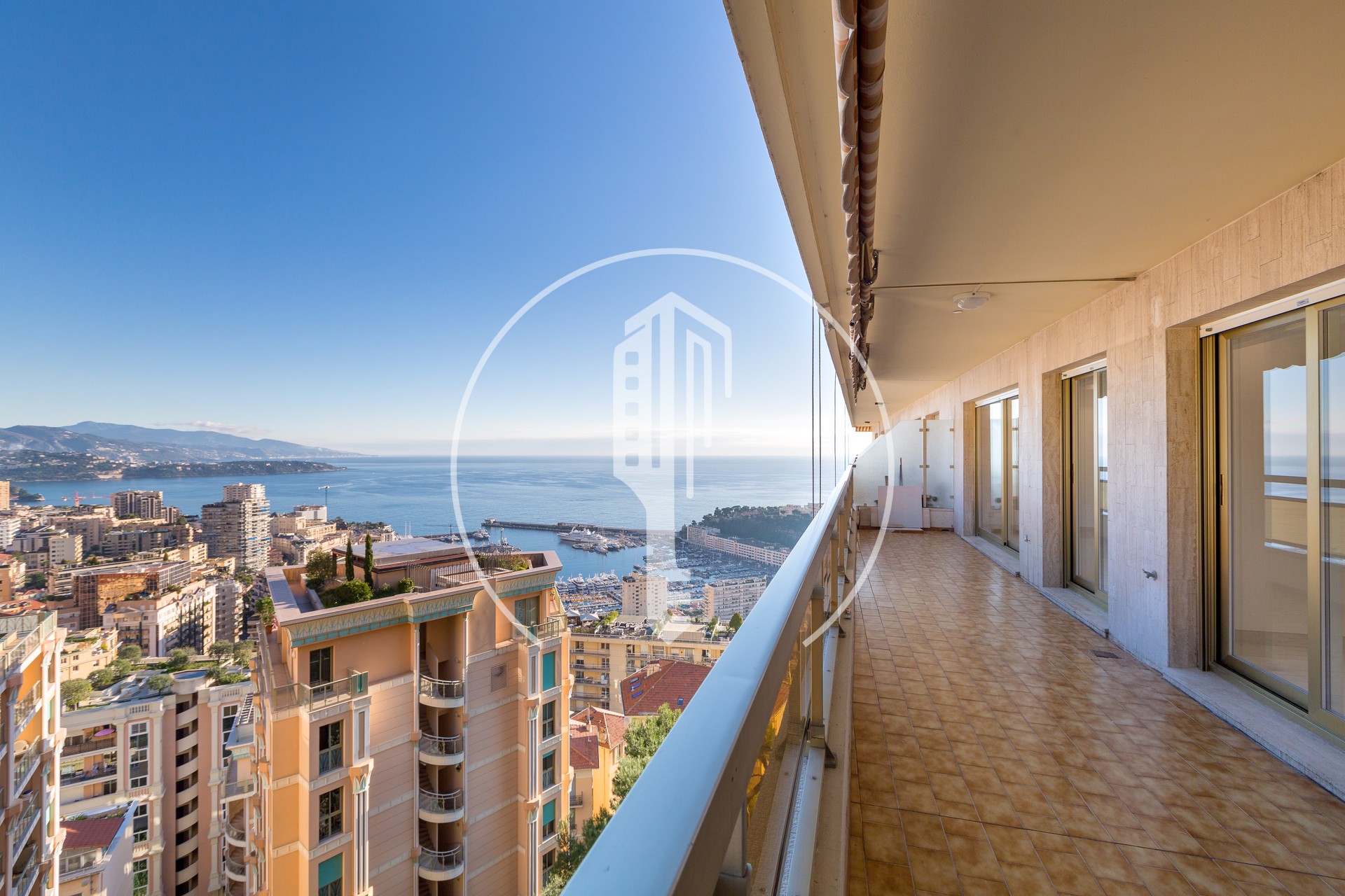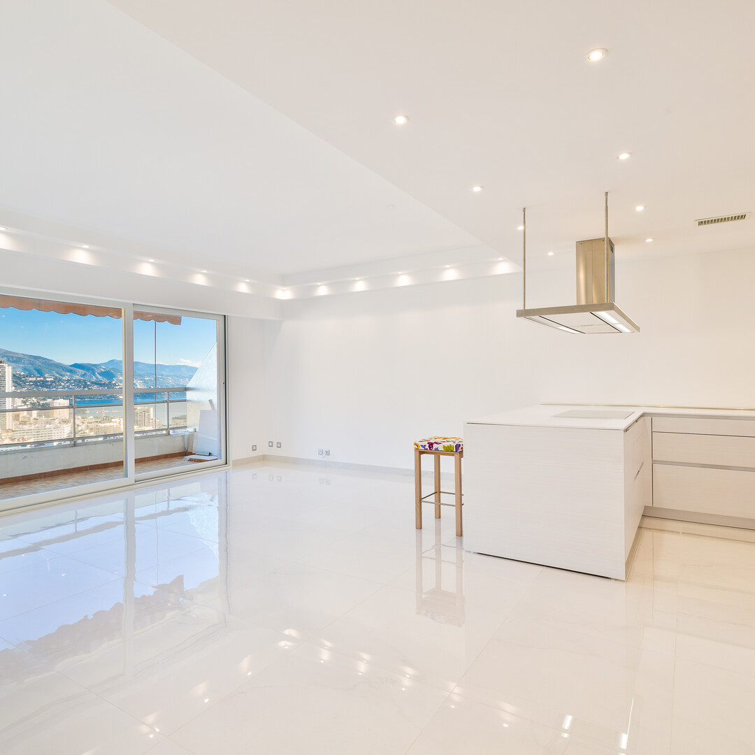 With an interior surface of 90.68 sqm and a terrace of 27.70 sqm, this bright high-floor 2-bedroom apartment enjoys remarkable panoramic views over the sea and the Port of Monaco.
