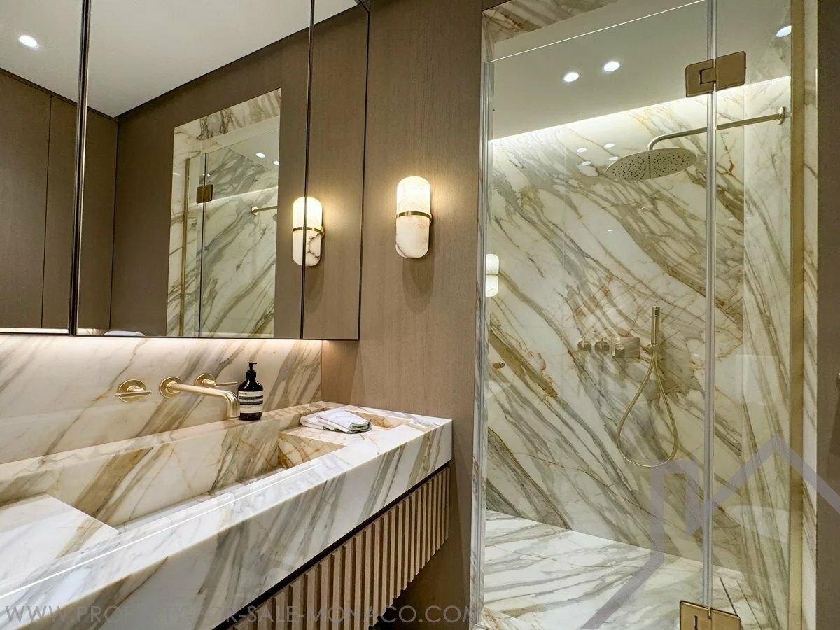 Picture this: your morning coffee facing the yachts. Sunlight flooding your double living room with solid wood flooring from morning to evening. This terrace – your new living space – where every moment becomes a privilege. Every detail has been considered. The black marble open kitchen, equipped as it should be. The solid wood flooring flowing through the living spaces. And this master suite: a spacious walk-in dressing, an integrated study, a bathroom dressed in gold-veined marble. Two additional perfectly arranged bedrooms complete this ensemble. Fully renovated. Contemporary design. Noble materials. Move-in ready. No work needed. No waiting. Just you and Monaco.