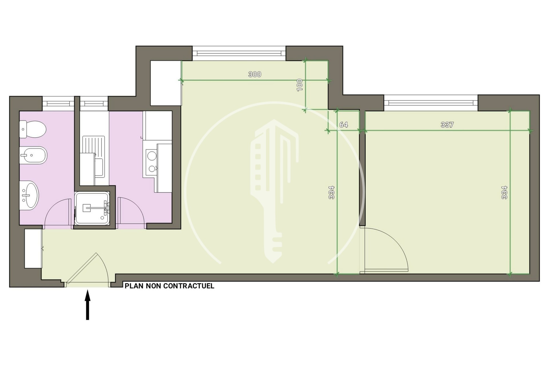 This apartment of 45 sqm is located in a residential district. It can be used for residential or office use.