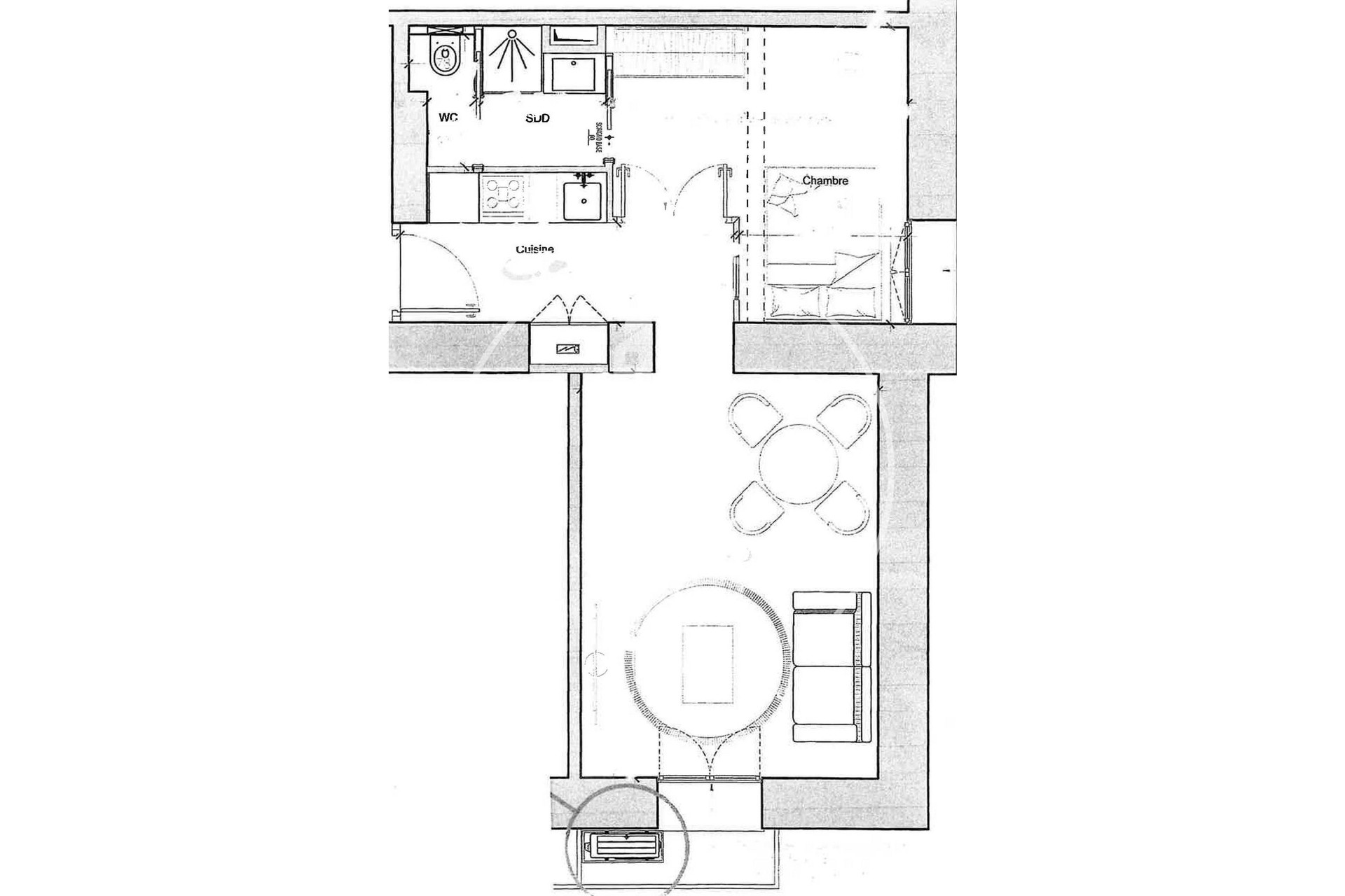 Bright and featuring high ceilings, it comprises an entrance with an equipped kitchen, a living room with a balcony and a bedroom with a shower room and toilet.